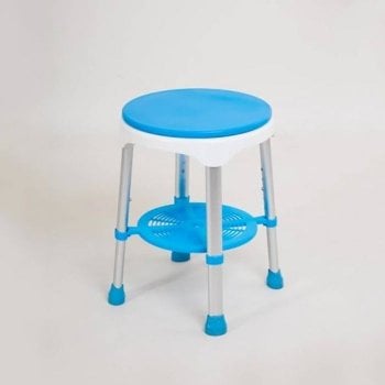 This blow moulded shower chair with back rest provides comfort and strength. It has a durable, corrosion proof lightweight aluminium frame with height adjustable angled legs fitted with suction style tips to provide additional stability. Drainage holes in the seat reduce slipping and allows excess water to drain away freely.